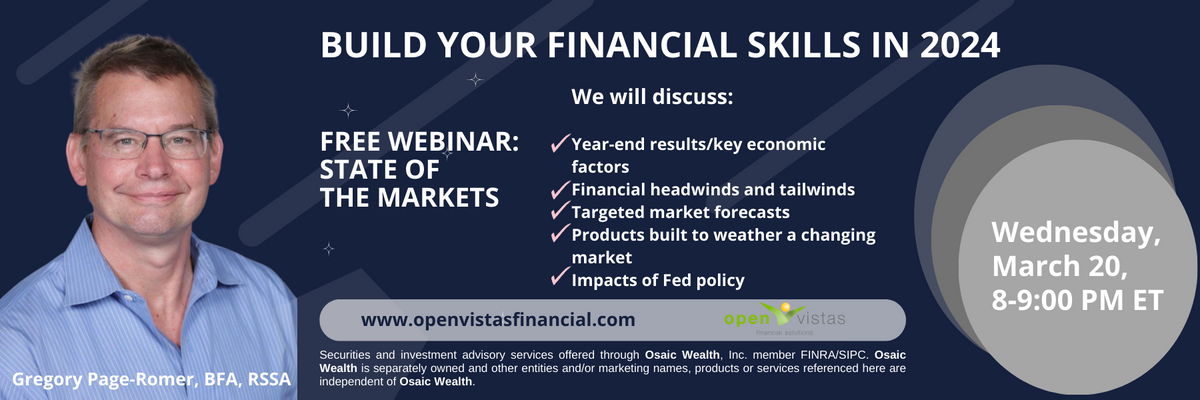 Now is a great time to review last year's market behavior and talk about what may lay ahead. This presentation event examines the financial factors at play, including economic developments, world events, and other market influences. It also looks at what might be around the corner for 2024. We'll explore potential strategies to effectively navigate these influences and seize opportunities in the market.